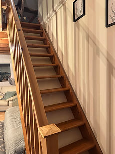 Steep stairs leading to the first floor bedrooms and bathrooms.
